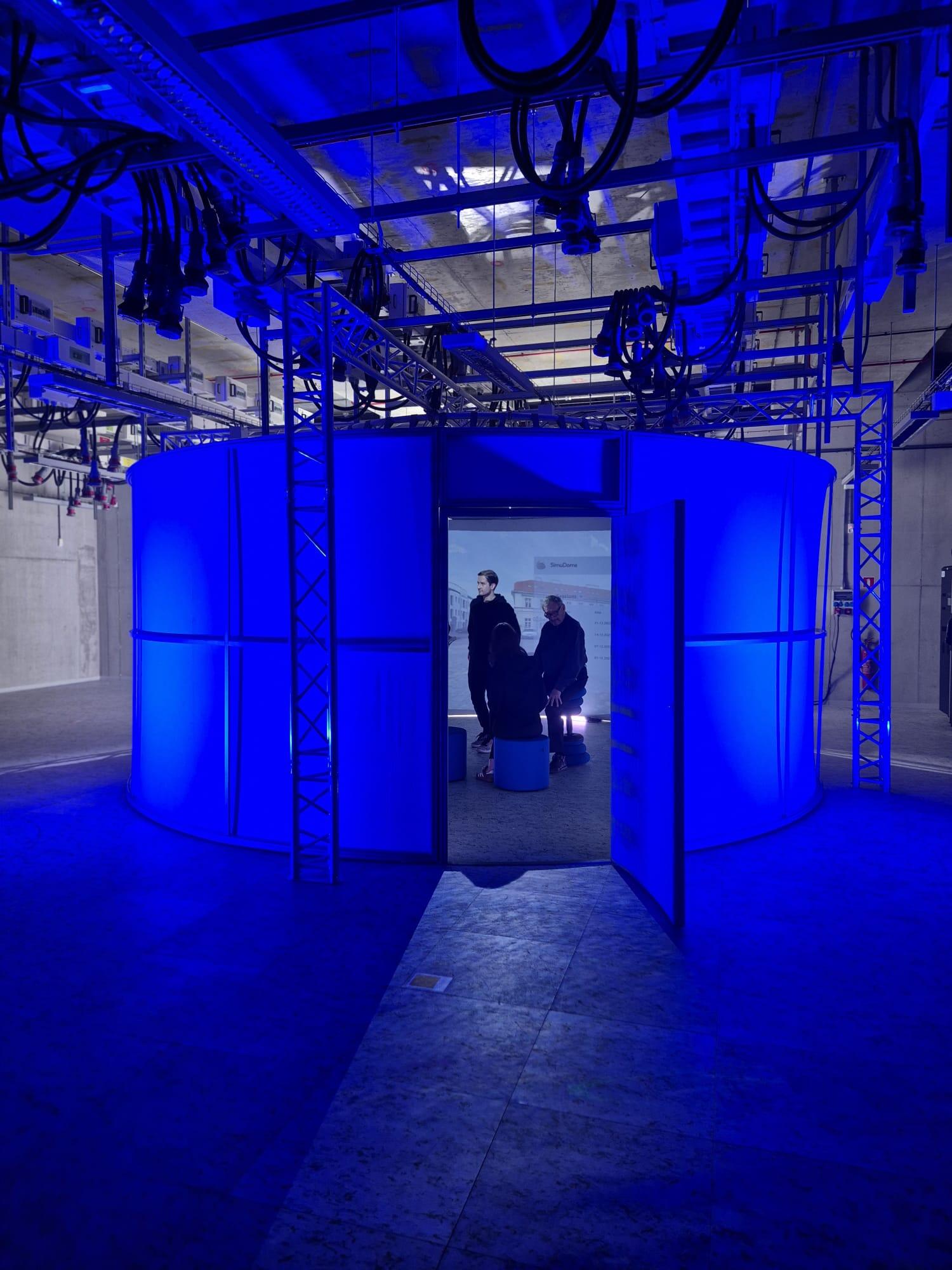 The demo showcases a drone operator training session conducted inside the SimuDome cylindrical projection space. Unlike traditional classroom training or isolated VR experiences, SimuDome creates a fully immersive 360° environment where participants are physically present inside the simulation.