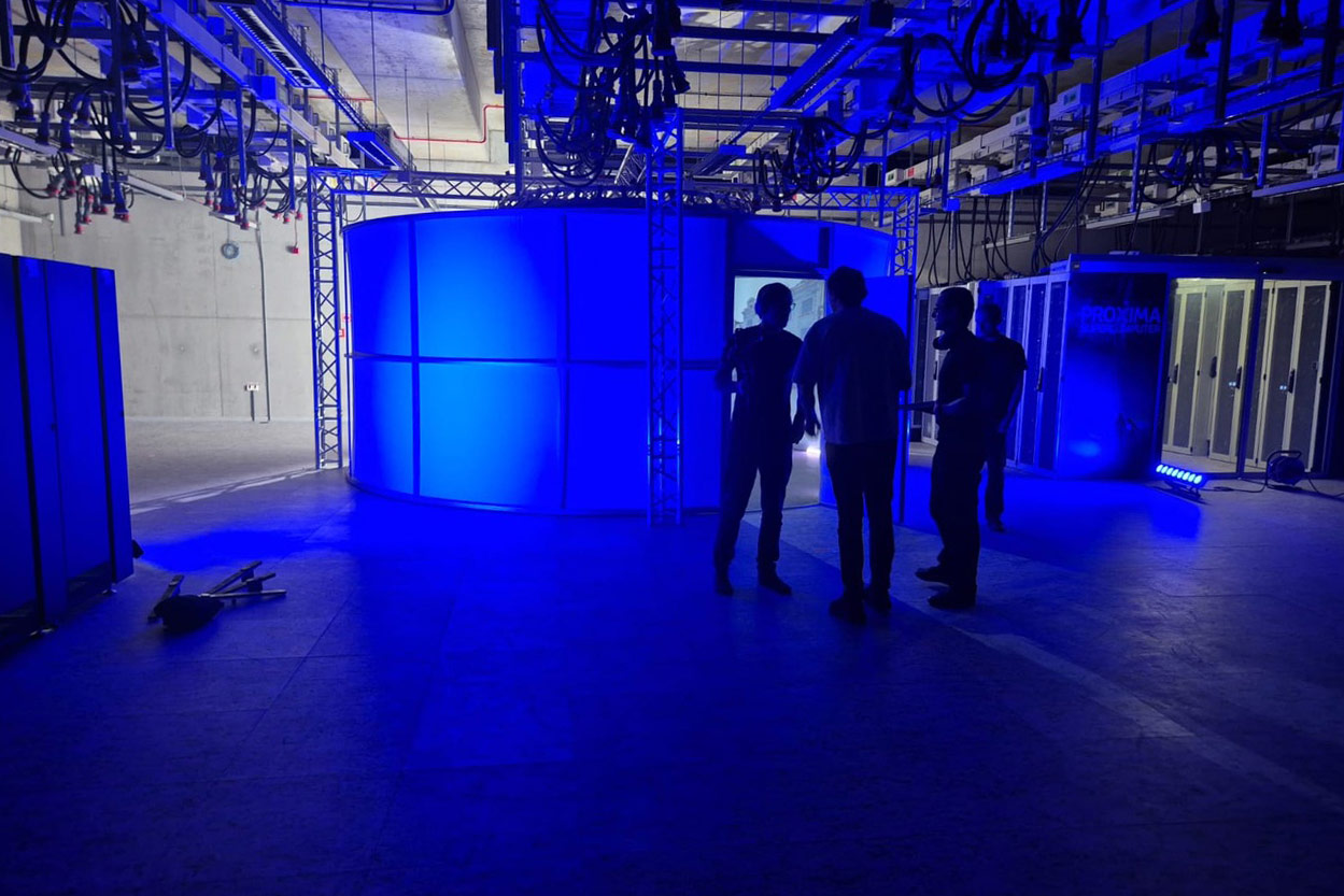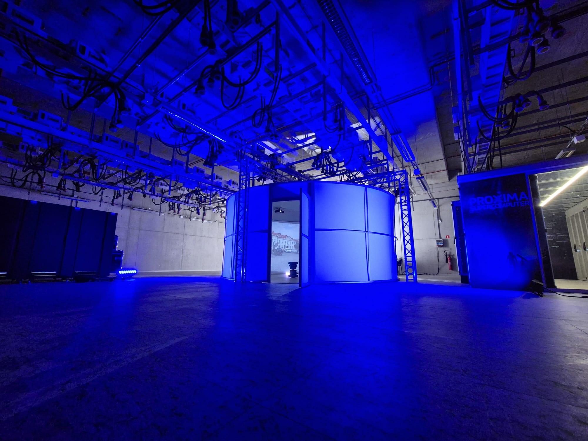 The projection surrounds trainees from every direction, forming a shared training environment that enables group learning, real-time analysis, and collaborative decision-making.