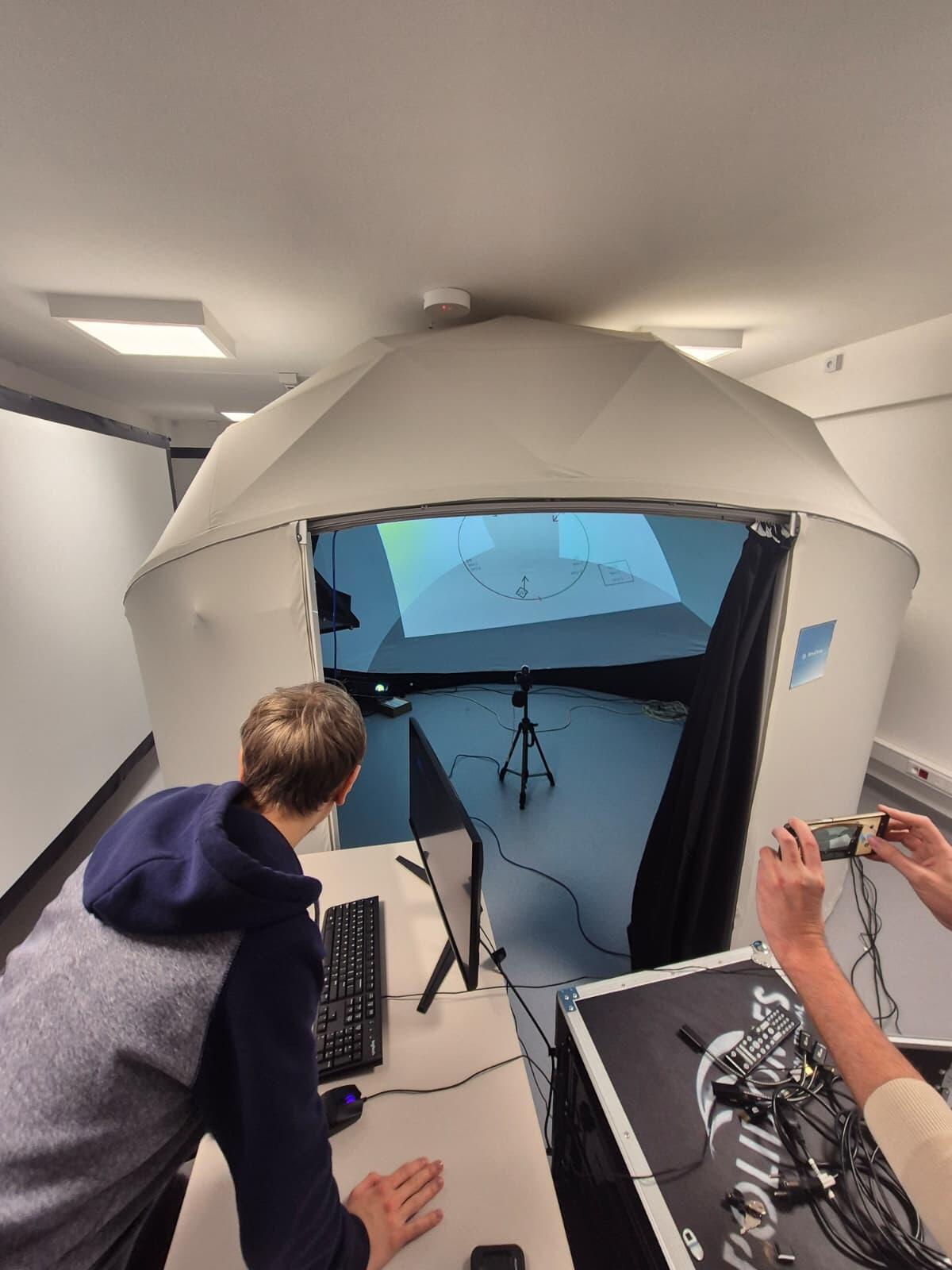 SimuDome Training Center integrates advanced visualization technology with practical, scenario-based learning. In the presented scenario, drone operators perform exercises in realistic, high-fidelity environments designed to replicate operational conditions.